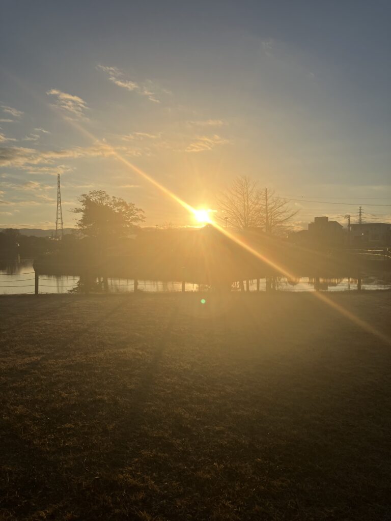 今年も宜しくお願いします。恒例、門池元旦歩こう会。初日の出。